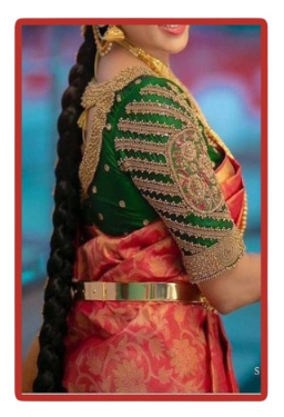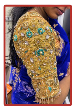 An Aari work blouse is a beautifully handcrafted blouse known for its detailed needlework and fine embroidery. Using the traditional Aari technique, artisans create intricate floral, peacock, and paisley patterns with beads, sequins, and threads. Perfect for weddings and festive occasions, this blouse adds a rich, elegant, and traditional charm to any saree or bridal outfit.