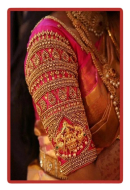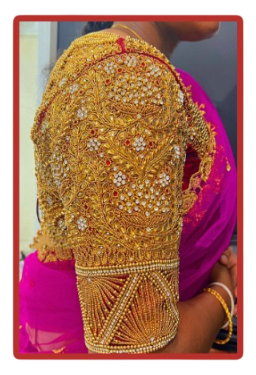 An Aari work blouse is a beautifully handcrafted blouse known for its detailed needlework and fine embroidery. Using the traditional Aari technique, artisans create intricate floral, peacock, and paisley patterns with beads, sequins, and threads. Perfect for weddings and festive occasions, this blouse adds a rich, elegant, and traditional charm to any saree or bridal outfit.